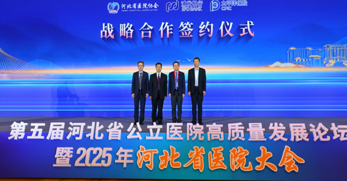 2025年11月1日,第五届河北省公立医院高质量发展论坛暨2025年河北省医院大会在石家庄举办。中国太保寿险河北分公司、浦发银行石家庄分行与河北省医院协会签署战略合作协议,正式成为河北省医院协会理事会员单位。中国太保寿险副总经理代传江作为战略合作单位代表致辞,中国太保寿险河北分公司总经理郑楠代表公司签约。