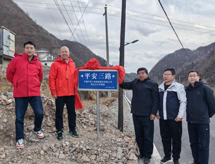 11月24日,由平安人寿河北分公司协调中华社会救助基金会,筹措5万元援建承德市兴隆县陶家台村的第三条“平安路”正式举行揭牌仪式。