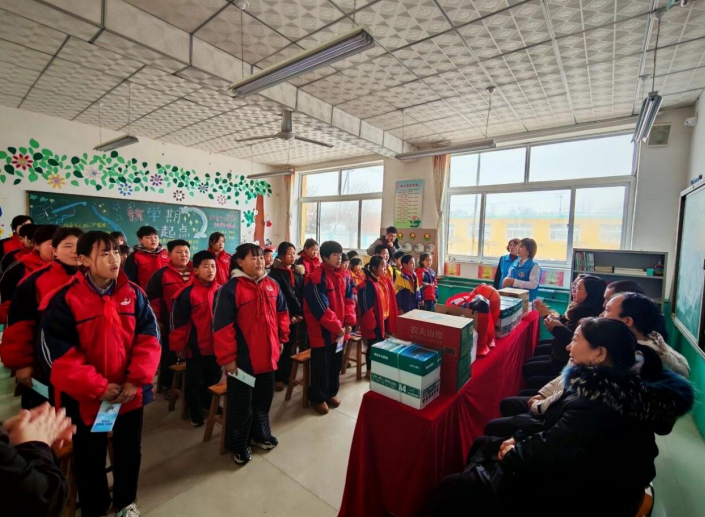 秦皇岛中心支公司志愿者团队冒雪走进河北省卢龙县贫困村富申庄小学,开展爱心捐赠与关爱慰问活动。向富申庄小学捐赠篮球、足球等体育器材,彩笔等美术用品及教学办公用品,有效充实校园教学文体物资。