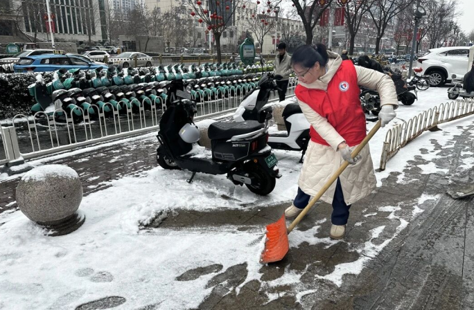 邯郸降了一场雪,为了降低路上新人出行安全隐患,邯郸中心支公司志愿者与街道环卫工人并肩作战,开展“铲雪护行”志愿服务,手持铁锹、推雪板等工具铲除厚厚堆实的积雪,清理出一条安全畅通的道路。