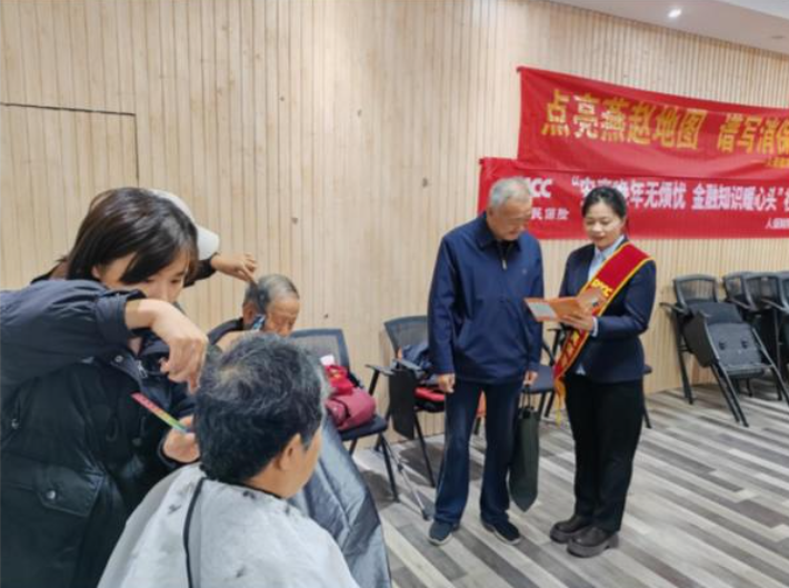 除金融知识普及外,还开展了暖心敬老服务。由聘请的专业医护人员为老年人提供义诊服务,诊脉、按摩、测量血压,解答健康咨询,普及老年慢性病养护知识;公司志愿者们为社区老人提供免费理发服务,用实际行动体现对老年群体的关爱。