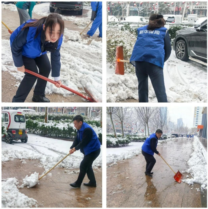 邯郸降了一场雪,为了降低路上新人出行安全隐患,邯郸中心支公司志愿者与街道环卫工人并肩作战,开展“铲雪护行”志愿服务,手持铁锹、推雪板等工具铲除厚厚堆实的积雪,清理出一条安全畅通的道路。